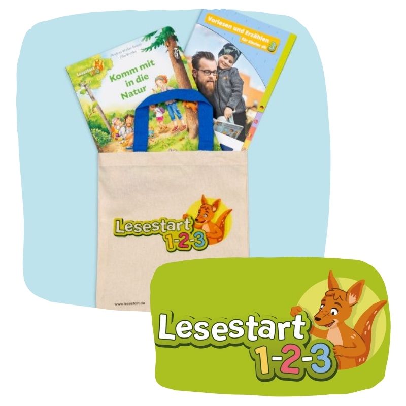 In drei aufeinander folgenden Jahren erhalten Eltern für ihre Kinder im Alter von einem, zwei und drei Jahren Lesestart-Sets. Die ersten beiden Sets können Sie in teilnehmenden Kinderarztpraxen bekommen, das dritte Set in der Bücherei vor Ort. Zu allen drei Sets gehören ein altersgerechtes Bilderbuch, Informationen für die Eltern mit Alltagstipps zum Vorlesen und Erzählen und eine kleine Stofftasche.