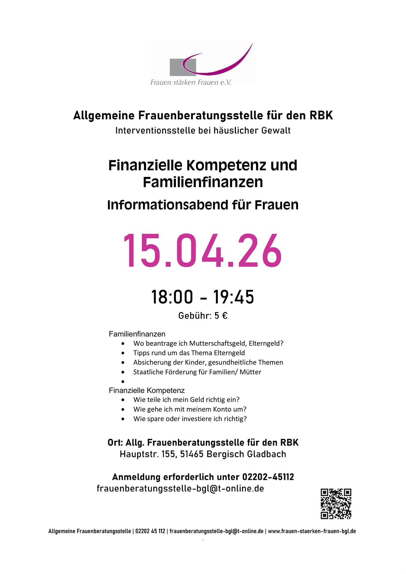 Die Allgemeine Frauenberatungsstelle für den RBK veranstaltet einen Informationsabend „Finanzielle Kompetenz und Familienfinanzen“