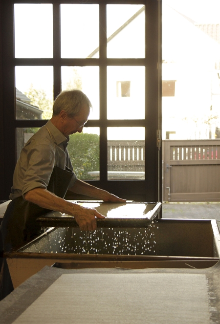 Handgeschöpftes Papier aus der Bütte scheint aus der Zeit gefallen zu sein, denn Papier für den Alltag wird massenhaft auf großen Maschinen produziert. Doch dieses Handwerk hält sich am Rande der Eifel in einer kleinen spezialisierten Werkstatt von John Gerard. Der in den USA geborene Künstler und Papiermacher beschäftigt sich seit mehr als 40 Jahren mit dem Material.