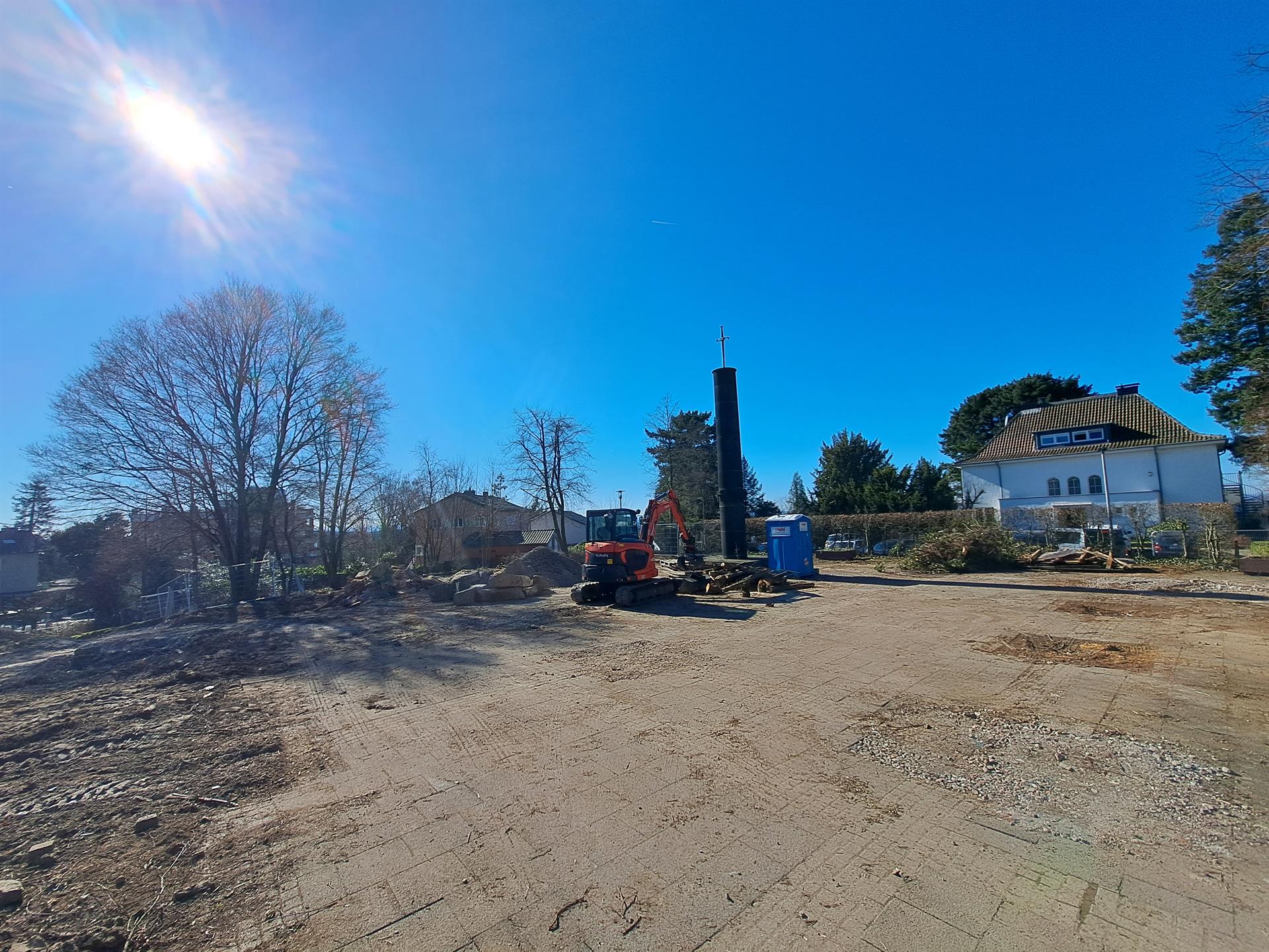 Nach dem Baubeginn Ende Januar sind erste vorbereitende Arbeiten erfolgt. Dies waren in erster Linie die Rodung einzelner Bäume und Sträucher sowie grobe Erd- und Abrissarbeiten.