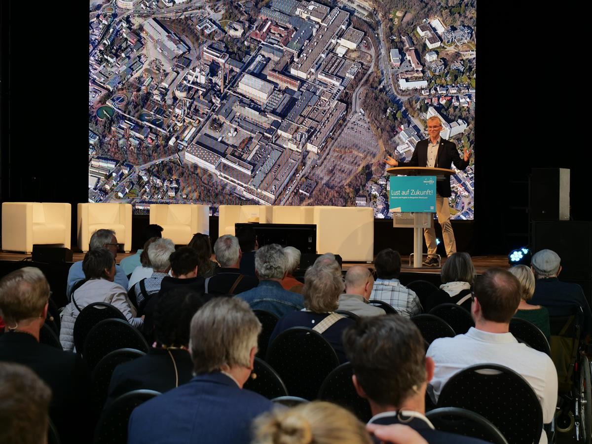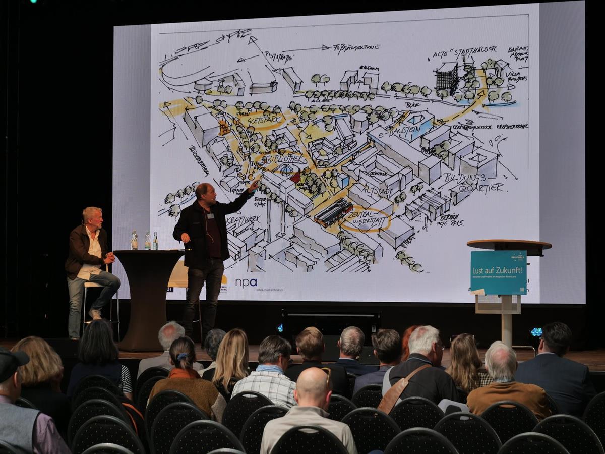 Das Bürgerforum leitet ereignisreiche Tage „auf Zanders“ ein. Denn „Weiter geht’s!“ danach mit dem gleichnamigen REGIONALE-Kongress für geladene Gäste aus Verwaltung, Wirtschaft und Gesellschaft. Am 12. und 13. Mai fällt mit der Fachveranstaltung, in deren Fokus das Thema ‚Umbau und Weiternutzung von Gebäuden und Arealen‘ steht, der Startschuss für den Präsentationszeitraum der REGIONALE 2025 Bergisches RheinLand unter dem Motto „Lust auf Zukunft!“, dessen größtes Einzelprojekt die Konversion des Zanders-Areals ist.