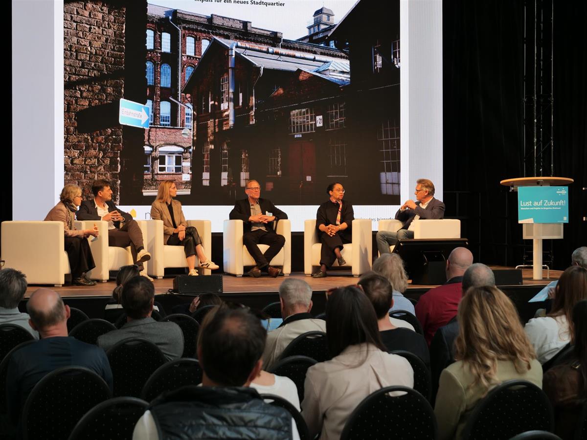 Den Auftakt macht ab 11:15 Uhr eine Podiumsdiskussion unter dem Titel „Weiter geht's! Das Zanders-Areal zwischen Zeitdruck und Aufbruchsstimmung“. Im Zentrum des Austauschs der Expert*innen aus den Bereichen Stadtplanung, Baurecht und Verwaltung stehen dabei die vielschichtigen planerischen, rechtlichen aber auch gesellschaftlichen Herausforderungen, die auf dem Weg der Transformation einer ehemaligen Industriefläche in ein lebendiges Stadtquartier zu bewältigen sind.