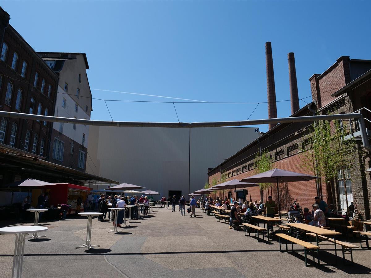 Ab 17:30 Uhr findet der Tag einen musikalischen Ausklang. Den Schlussakkord liefert die Bergisch Gladbacher Coverband handerCover, die von der Bühne aus zum Verweilen einlädt. Für das leibliche Wohl steht auf dem „Altstadt-Platz“ neben der Alten Zentralwerkstatt und eingerahmt vom Ensemble denkmalgeschützter Gebäude ganztägig ein Foodtruck samt Getränkestand bereit.