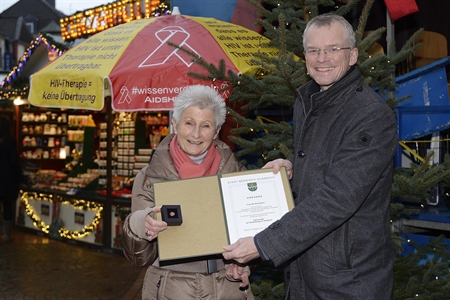 Anlässlich des Gedenktags an die Opfer des Nationalsozialismus am Mittwoch, 27. Januar 2016, hatte der Ganey-Tikva-Verein in die Kirche zum Heilsbrunnen zu einer besonderen Veranstaltung eingeladen: Bürgermeister Lutz Urbach zeichnete Roland Vossebrecker mit der Ehrennadel der Stadt Bergisch Gladbach aus.