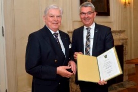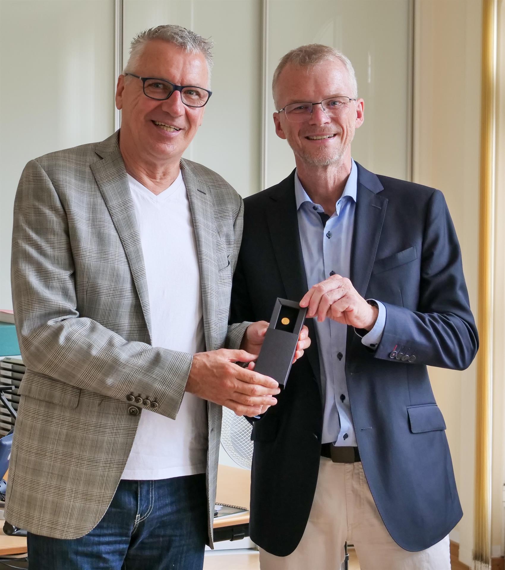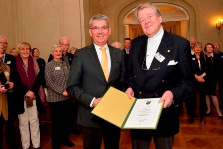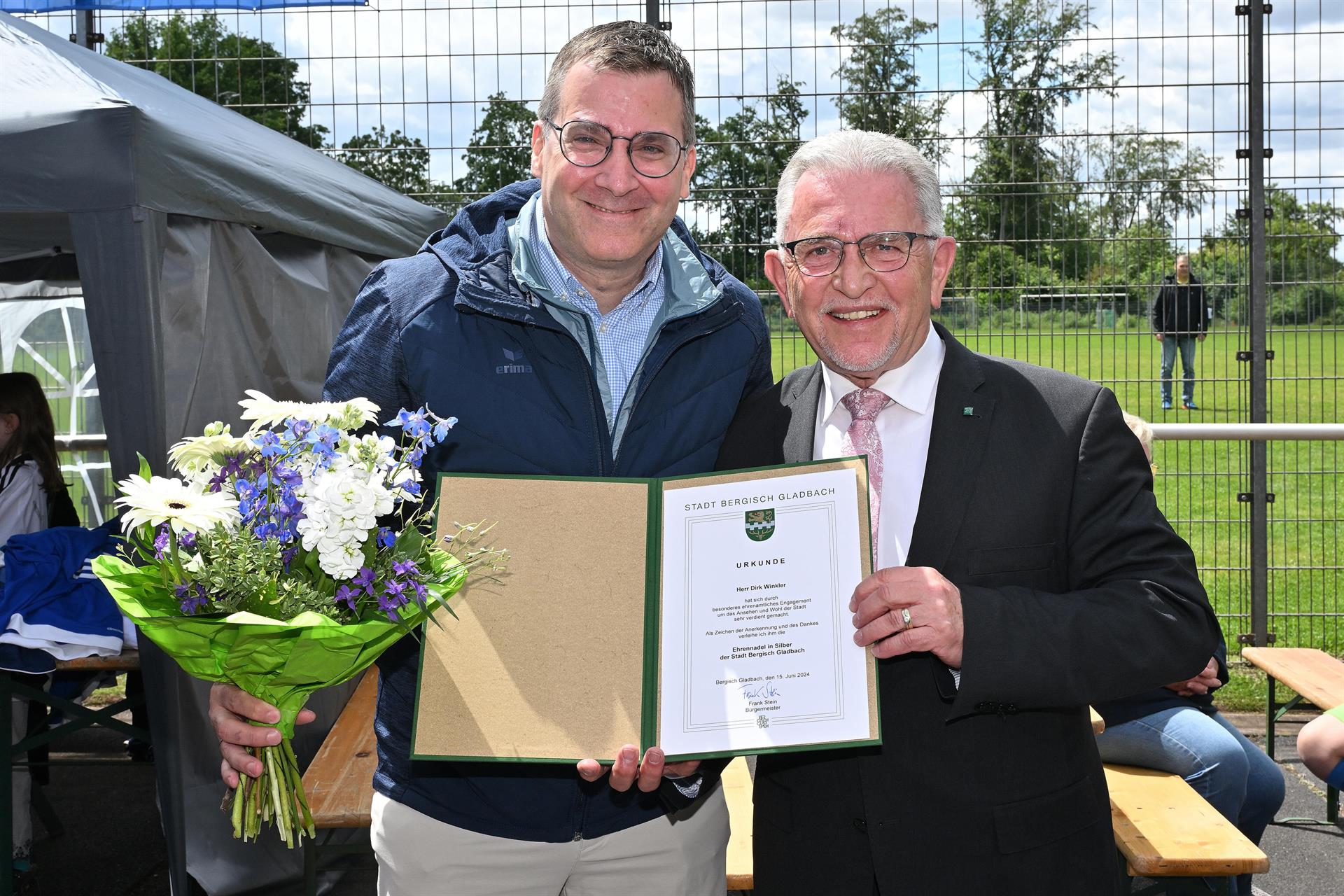 Bürgermeister Lutz Urbach zeichnete Roland Vossebrecker für sein Engagement mit der Ehrennadel der Stadt Bergisch Gladbach aus.