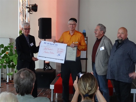 Nominiert für den UmweltAward waren Markus Bollen mit der Ausstellung „Unsichtbar“ und Wolfgang Heuwinkel mit der Skulptur „Baumeinpflanzung in Zellstoff“, die als sein Geschenk an die Stadt auf dem Zanders-Areal zu sehen ist.