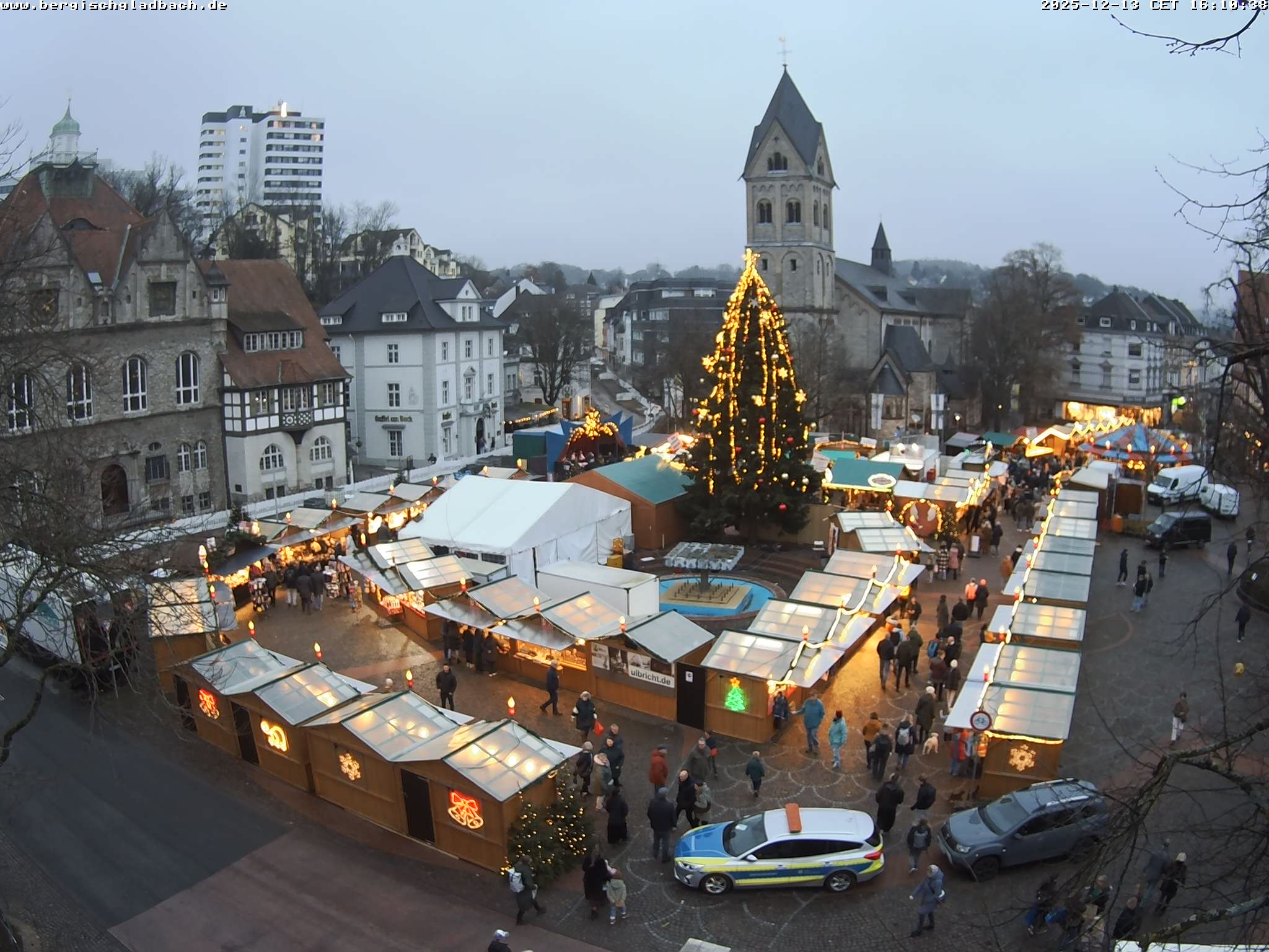 Blick auf den Konrad-Adenauer-Platz mit Rathaus und Laurentiuskirche